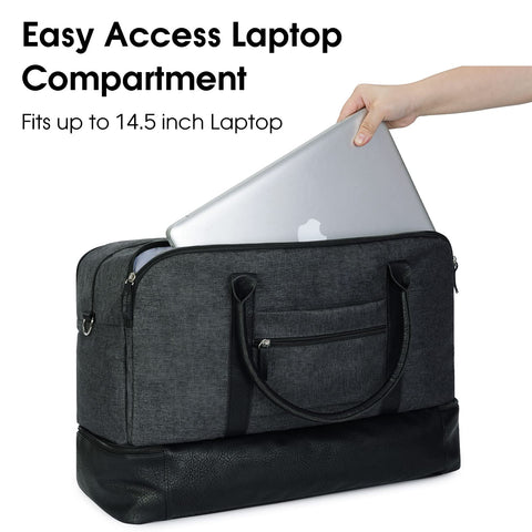 2pcs Set Travel Bag: WANDF weekend overnight bag comes with 1 toiletry bag, well keep your toiletries organized. Our travel duffel bag is designed with 1 waterproof bottom compartment, 2 main compartment and 1 laptop pocket. Multi-function and large capacity, it's easy for you to put travel essentials in this carry on bag.